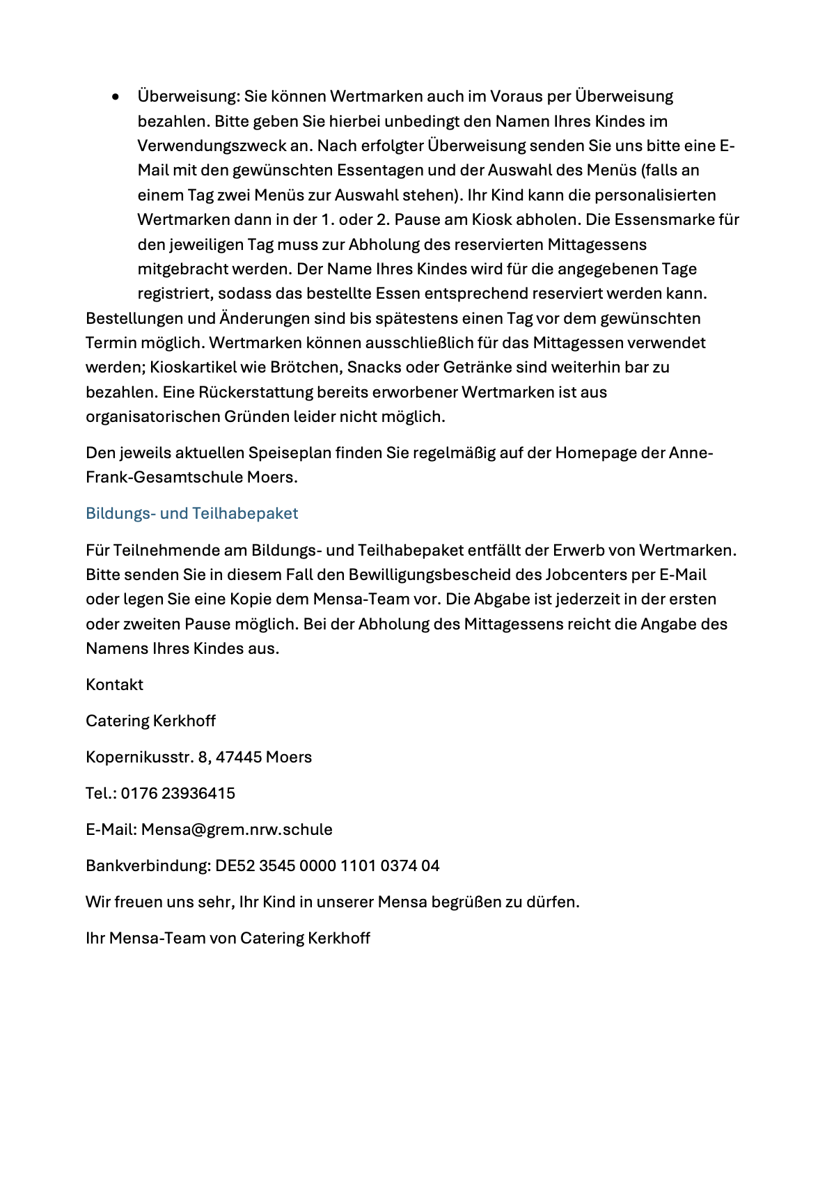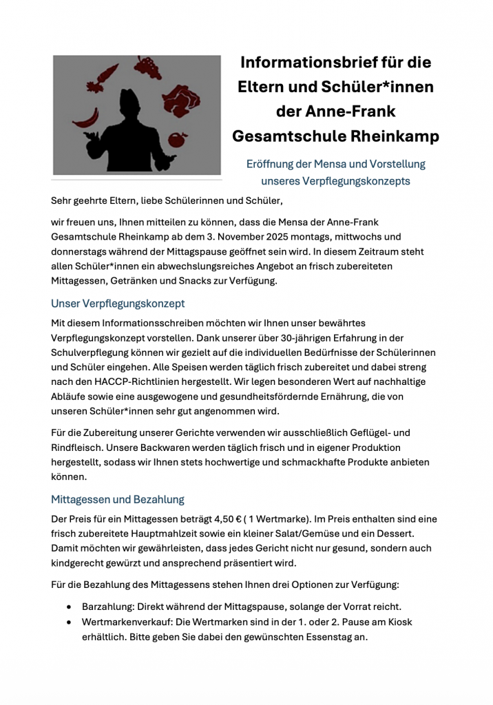 Mittagessen ab dem 03.11